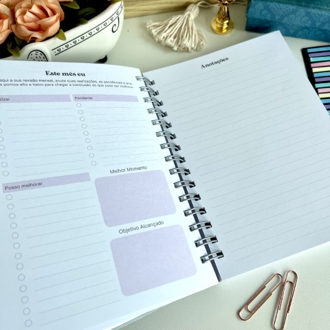 O nosso planner possui diversas ferramentas de organização e planejamento, para que contribua da melhor forma possível com a sua produtividade e qualidade de vida. Com ele você consegue ter uma visão geral do seu mês, da sua semana inteira em duas páginas e também das suas finanças, controle de hábitos, o que facilita seguir uma rotina mais focada no que realmente interessa, anotar tudo e ter sempre à mão com você. A hora de começar a ter uma vida mais leve e focada, é agora mesmo!!!